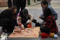 Having developed a project aim and surveyed locations and the unique meanings held by them. Drawing from performances such as Invisible Flock and Third Angel, we wanted to come up with a digital and physical collective of these locations and being able to transport viewers, participants to these many various places digitally. In the coming steps, we came up with site-specific performances for each location and digitally making these internet accessible through QR codes. To maintain the physical quality and loci of the performances we came up with a alternate leeds map connected with wool and thread linking a very physical QR Leeds alternate map upon scanning that takes you to an alternate multiverse of the city of Leeds.